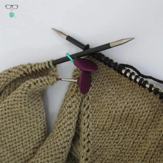 See? You've got a marker and those stoppers to contend with? I tend to push the stoppers behind all of my work so I don't end up wrapping my working yarn around the cable of the markers. THAT'S super annoying.